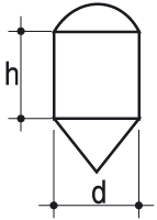 Type: Spherical roof, conical bottom, cone angle 60°.